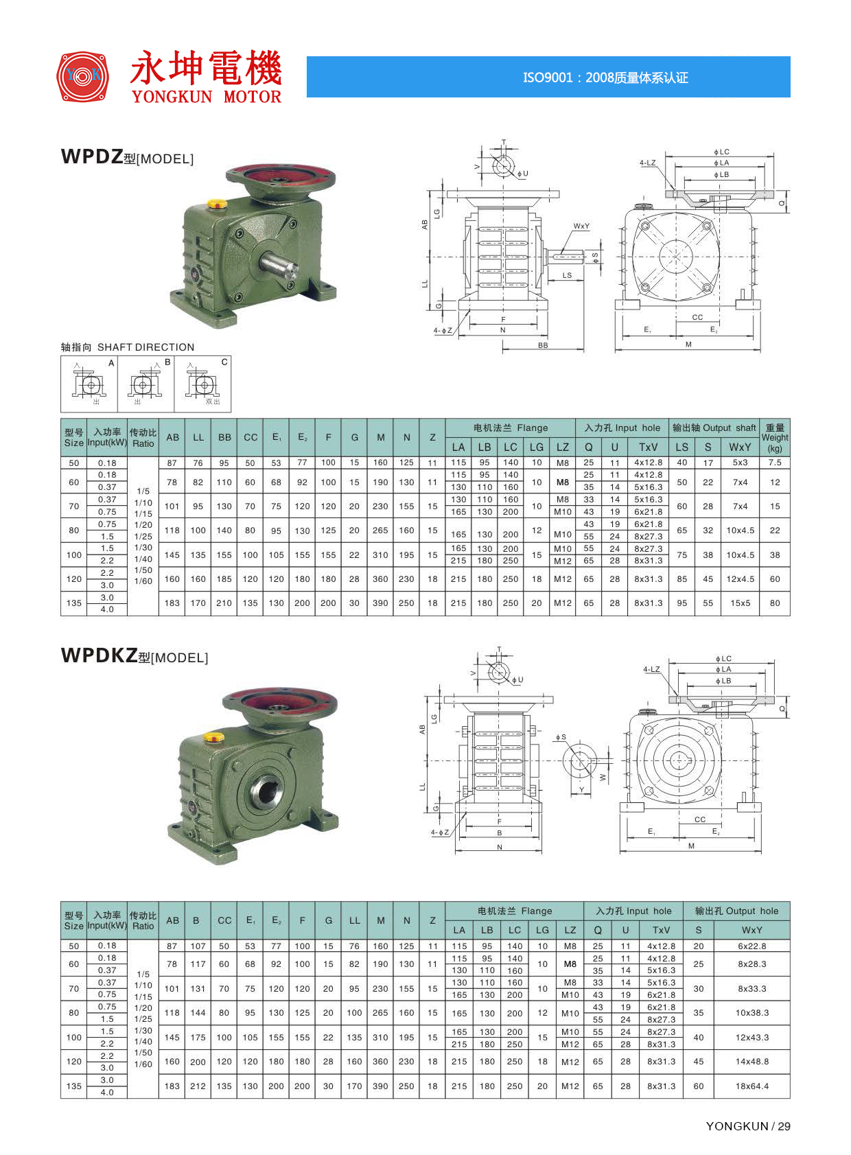臺灣永坤WPDZ蝸輪蝸桿減速機