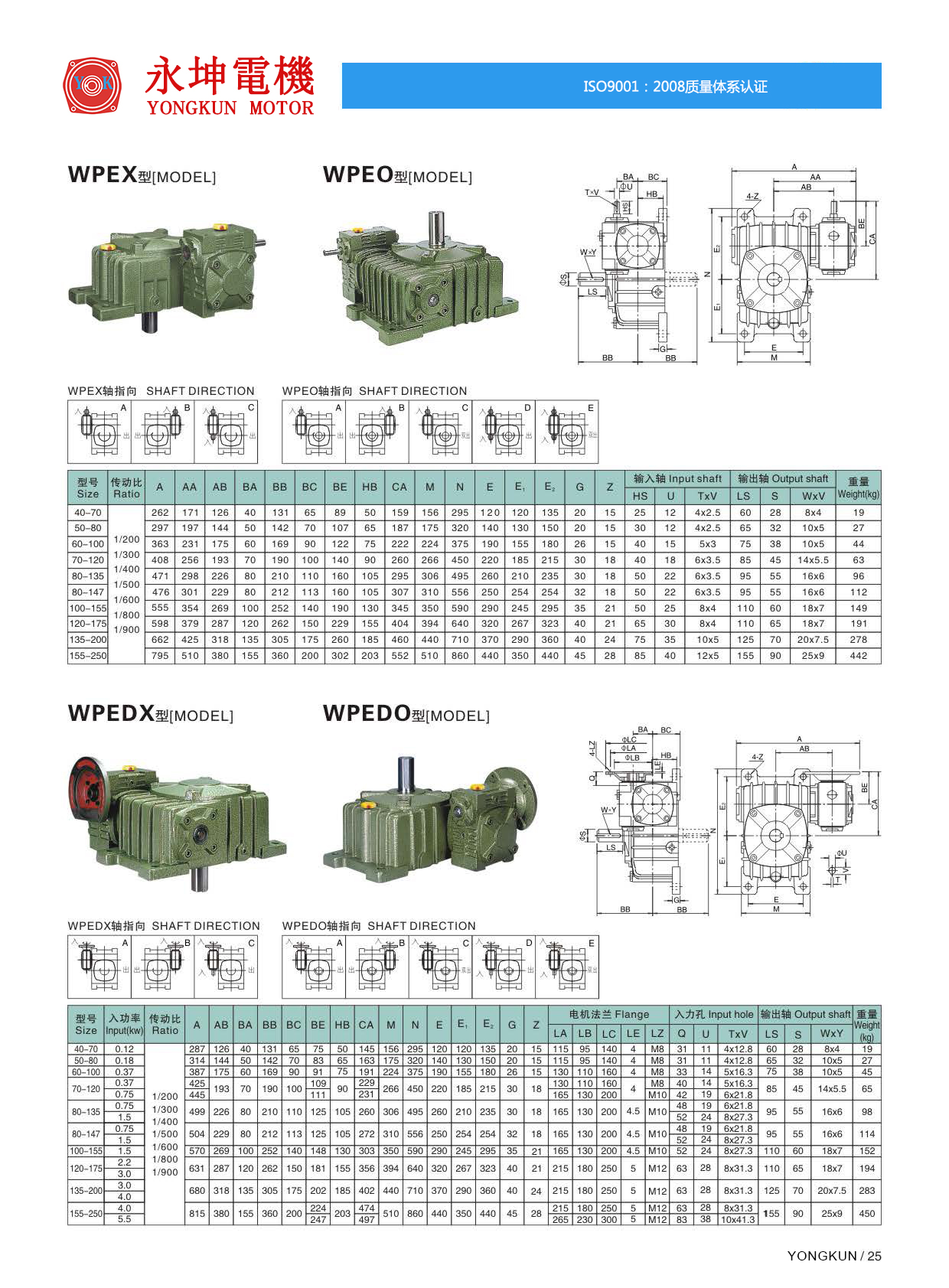 臺灣永坤WPEX蝸輪蝸桿減速機