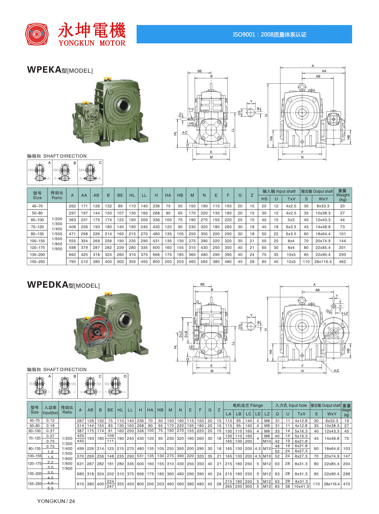 臺(tái)灣永坤WPEKA蝸輪蝸桿減速機(jī)