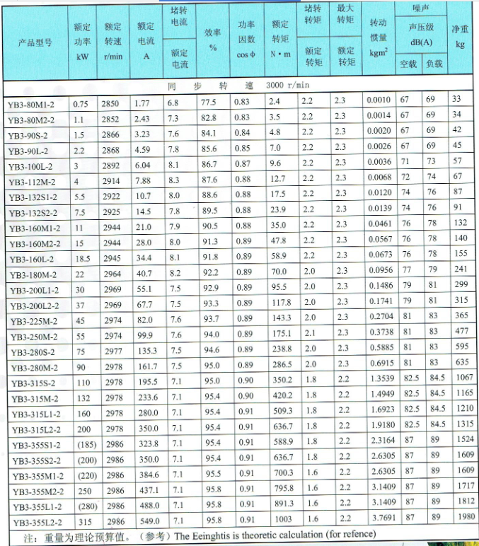 YB3防爆電機(jī),下面表中是2極的電機(jī),可按要求做4級和8級的防爆電機(jī)