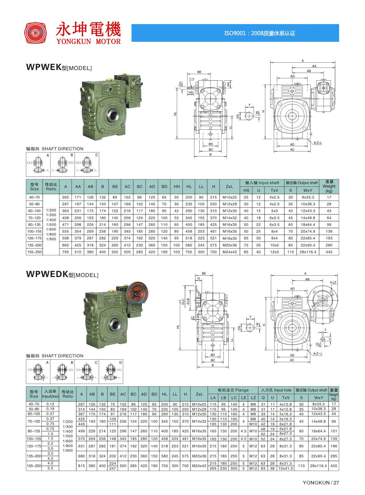 臺灣永坤WPWEDK蝸輪蝸桿減速機