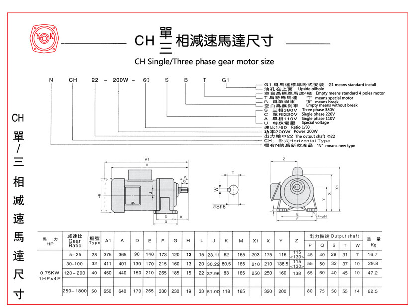 臺(tái)灣永坤臥式齒輪減速機(jī)NCH40-750W